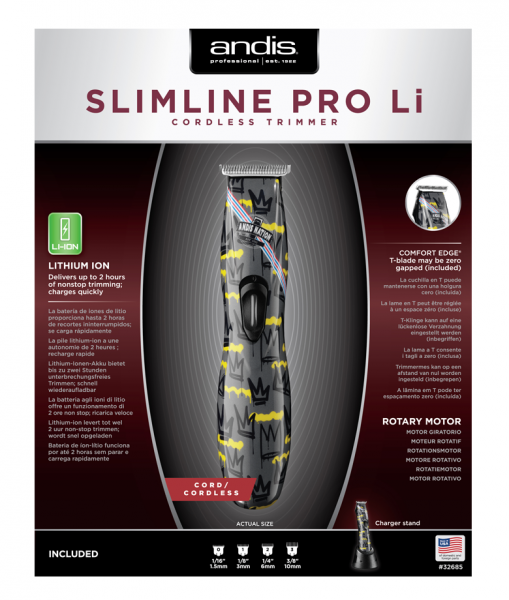 Oblíbený konturovací akumulátorový strojek Andis SlimLine Pro Li T-Blade v novém Graffiti provedení.