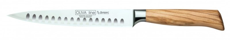 Nůž kuchyňský BURGVOGEL Solingen 6880.926.20.6 - Oliva je vynikající univerzální kuchyňský nástroj, který je perfektně vyvážený a ideální pro široké spektrum kuchyňských úkolů. Je vyroben z nejvyšší kvality kované solingenské chrom-molybden-vanadové oceli, která byla zakalená na tvrdost 55-56 HRC. Ostří tohoto nože je velmi pečlivě ručně zabrušované a má kulové drážky, které omezují nežádoucí přilnavost krájených potravin.