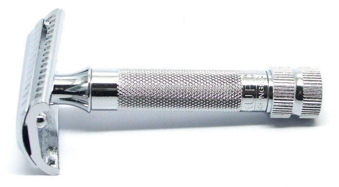 Holicí strojek je vyroben z kvalitního chromovaného kovu a disponuje praktickým šroubovacím držadlem. Plná lišta je vhodná pro každodenní hladké holení a lze jej použít s jakýmkoli typem klasických žiletek.