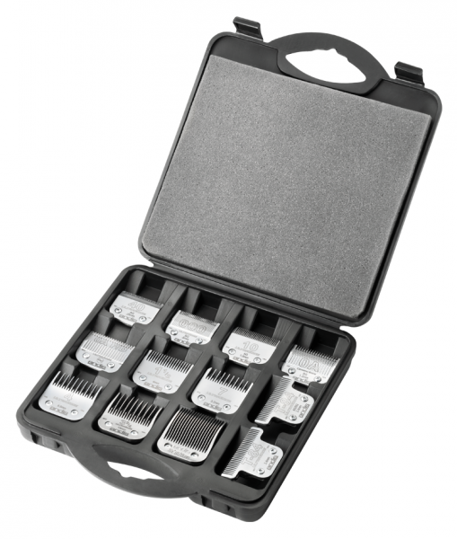 Kufřík má 12 přihrádek, což umožňuje uspořádání a uchování různých typů střihacích hlavic. Kufřík je lemován tuhou pěnou, což zajišťuje maximální ochranu střihacích hlavic při přepravě.
